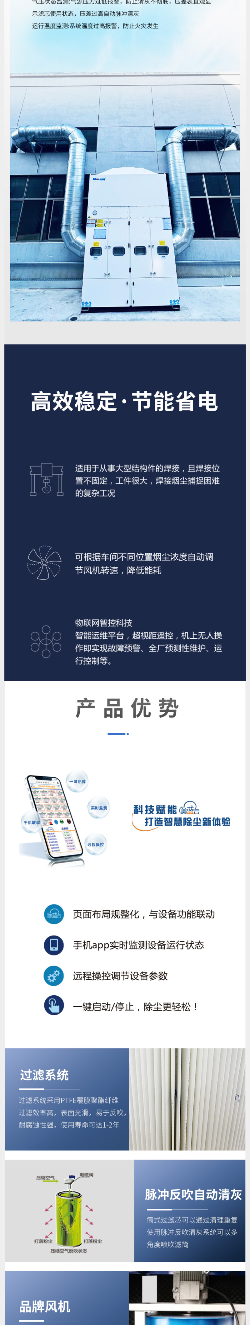 吹吸式車(chē)間除塵設備適用于從事大型結構件的焊接,且焊接位置不固定,工件很大,焊接煙塵捕捉困難的復雜工況